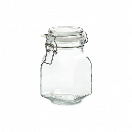 Стеклянная банка с бугельным замком объемом 800мл. Благодаря механизму замка, обеспечивающему очень плотное прижатие крышки к банке, все содержимое будет надежно защищено на долгое время.