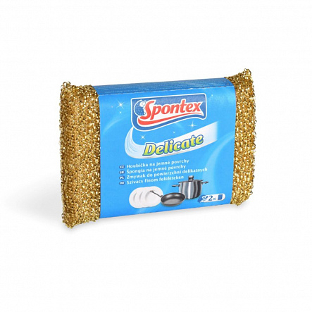 • Губка металлизированная 1 шт Гибкая и сильная губка для деликатных поверхностей SPX Delicate. Отлично очищает, не оставляя царапин. Прекрасно подойдет для посуды с антипригарными покрытиями, фарфора, нержавеющей стали. Мягкая и нежная губка с высокой прочностью. Золотой или серебряный цвет в картонном держателе.