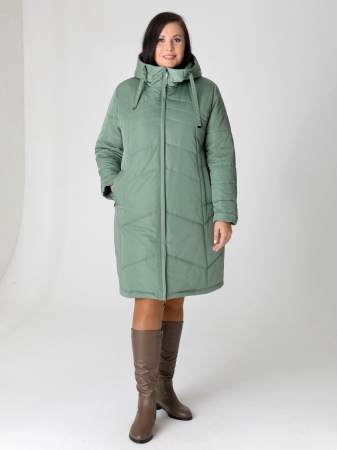 Зимнее пальто прямого силуэта с легким заужением к низу. Модель такого пальто средней длины подходит для девушек и женщин разных возрастных категорий. Воротник - уютная стойка, переходящая в капюшон. Застежка на двухзамковую молнию позволяет регулировать ширину шага при необходимости. Длину втачного рукава можно менять посредством отворота. Удобно расположенные карманы, застегиваются на молнию. Есть внутренний кармашек, тоже на молнии. Плащевая ткань, из которой выполнено изделие, имеет водоотталкивающую пропитку, выдерживающую небольшой дождь, снег и ветер. Хорошо зарекомендовавший себя утеплитель "Холлофайбер", плотностью 300гр/м, защитит от холода. Подкладка в изделии выполнена из ткани в мелкую полоску.