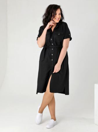 23207 Льняное платье-рубашка прямого силуэта с короткими цельнокроенными рукавами и застежкой на петли и пуговицы. Воротник английского типа с лацканами. Функциональные карманы расположены в боковых швах. Линию талии, при желании, можно подчеркнуть завязывающимся поясом. Такое платье можно использовать и как легкий кардиган в сочетании с брюками, джинсами и топами. Комбинируя это платье-рубашку с различными видами одежды, подбирая обувь по стилю, вы можете создать множество образов как для прогулок, так и для поездки в офис.