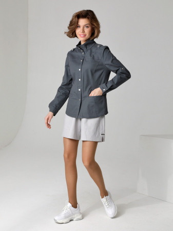 Стильный безподкладочный жакет для женщин и девушек любого возраста прекрасно дополнит гардероб на весну и лето. Универсальная длина позволяет сочетать его с брюками, шортами, юбками или платьем. Жакет-куртка из приятной на ощупь плотной хлопковой ткани - комфортная и практичная одежда для прохладного летнего вечера. Длинные втачные рукава легко регулируются патой. Застежка выполнена в виде кнопок и переходит в воротник-стойку. На талии есть кулиска, при желании вы можете подчеркнуть фигуру. Карманы прорезные и достаточно удобные.