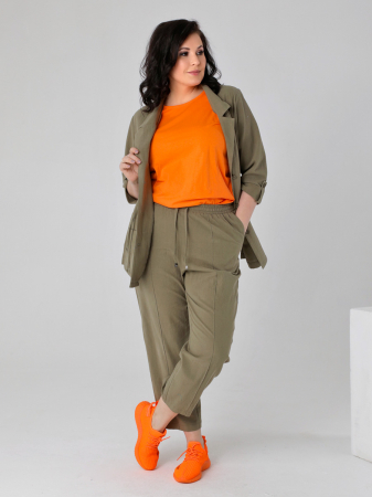 Укороченные прямые брюки на поясе с эластичной тесьмой. На передних половинках обработаны косые карманы. Эти летние брюки выполнены из "вареного" хлопка, который имеет характерные неровности и утолщения, что подчеркивает его натуральность. Сочетайте широкие брюки с топами, футболками, жакетами, меняйте обувь и аксессуары и брюки станут любимой вещью Вашего гардероба.