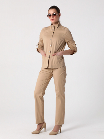 Стильный безподкладочный жакет для женщин и девушек любого возраста прекрасно дополнит гардероб на весну и лето. Универсальная длина позволяет сочетать его с брюками, шортами, юбками или платьем. Жакет-куртка из приятной на ощупь плотной хлопковой ткани - комфортная и практичная одежда для прохладного летнего вечера. Длинные втачные рукава легко регулируются патой. Застежка выполнена в виде кнопок и переходит в воротник-стойку. На талии есть кулиска, при желании вы можете подчеркнуть фигуру. Карманы прорезные и достаточно удобные. В нашей коллекции есть идеально комплектующиеся с этим жакетом брюки (арт. 25241), выполненные из такого же хлопка. Собирайте свои образы, дополняйте их яркими аксессуарами и наслаждайтесь комфортом в летние дни!