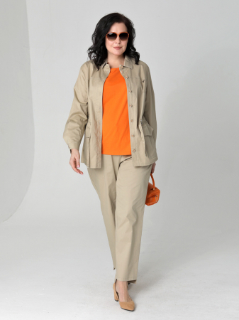 Летний жакет-рубашка без подкладки на пуговицах дополнит гардероб современных женщин и девушек любого возраста. Стильный женский жакет прямого силуэта - одежда, которая никогда не выходит из моды. Кулиска позволяет подчеркнуть талию. Низ втачного рукава оформлен манжетой. Есть накладные карманы с двумя входами, с клапаном. Воротник - на стойке, рубашечного типа. Этот легкий пиджак хорошо сочетается с юбками, брюками и платьями. Его удобно носить с кроссовками или туфлями. Это базовая одежда, которая будет хорошо смотреться в любой ситуации. Большой размерный ряд позволяет без труда подобрать нужный вариант. Такая модная рубашка хорошо сочетается с блузкой (арт. 25232) и с классическими узкими брюками (арт.25240) из нашей летней коллекции. Собирайте свои образы, дополняйте их яркими аксессуарами и наслаждайтесь комфортом в летние дни!