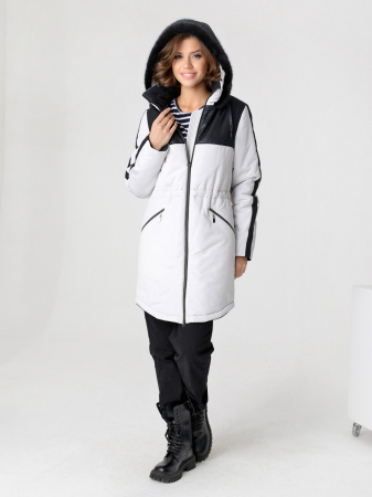 Демисезонная куртка прямого силуэта с застежкой на двухзамковую молнию подойдет для женщин и девушек любого возраста. Воротник - уютная стойка. Капюшон оформлен красивым искусственным мехом; опушка не отстегивается, но очень хорошо стирается и легко восстанавливает свой внешний вид. Свободный прямой силуэт этой модной парки можно изменить с помощью кулиски на линии талии. Удобно расположенные прорезные карманы, застегиваются на молнию. Есть внутренний кармашек, тоже на молнии. Сочетание двух контрастных тканей по-прежнему остается актуальным трендом в одежде! Эта стильная удлиненная куртка-парка выручит Вас осенью, весной и ранней зимой. Плащевая ткань имеет водоотталкивающую пропитку, которая выдержит небольшой дождь, снег и ветер. Хорошо зарекомендовавший себя утеплитель Холлофайбер плотностью 150 гр/м защитит от холода.