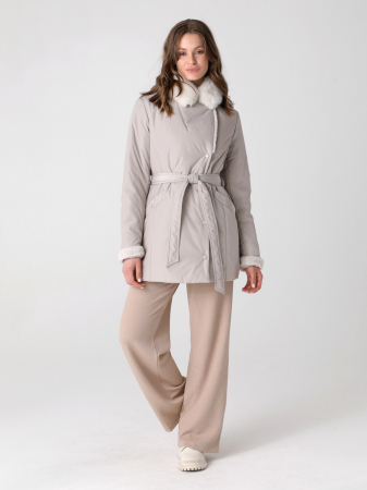 Стильная куртка прямого силуэта с двубортной застежкой на кнопки. Эта демисезонная куртка средней длины подходит для женщин и девушек любого возраста. Свободный прямой силуэт можно легко изменить с помощью съемного завязывающегося пояса. Воротник - "английского" вида с возможностью фиксации лацкана на пуговицу. Прорезные внешние и внутренний карманы застегиваются на кнопку. Сочетание двух видов эко-меха на воротнике и лацканах придает изделию модный вид и подчеркивает женственность и элегантность. Мех хорошо выдерживает обычную стирку и не меняет внешний вид после высыхания. Длину втачного рукава можно регулировать отворотом. Плащевая ткань имеет водоотталкивающую пропитку, которая выдержит небольшой осенний дождь или снег. Хорошо зарекомендовавший себя холлофайбер плотностью 150 гр/м защитит от холода и ветра. Подкладка в изделии - в мелкую полоску. Выбирайте понравившийся цвет, комбинируйте куртку с разными видами брюк, юбок или платьев и Ваша осень будет не только комфортной, а еще стильной и элегантн