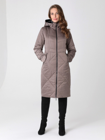 Пальто средней длины полуприлегающего силуэта с застежкой на двухзамковую молнию, обеспечивающую удобство при ходьбе. Воротник - стойка, переходящая в регулируемый капюшон. Удобно расположенные прорезные карманы застегиваются на молнию. Есть внутренний кармашек, тоже на молнии. Длину втачного рукава можно регулировать посредством отворота. При желании можно с помощью кулиски менять ширину изделия по линии низа. Модель такого пальто с контрастной фурнитурой и внутренней отделкой практична и подходит для девушек и женщин разных возрастных категорий. Плащевая ткань имеет водоотталкивающую пропитку, выдержит небольшой осенний дождь. Хорошо зарекомендовавший себя холлофайбер плотностью 150 гр\м защитит от холода и ветра.