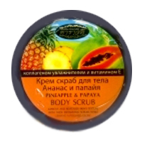 Нежный скраб для тела для всех типов кожи. Обладает ароматерапевтическим действием, а мягкая пена удаляет загрязнения и токсины Имеет уникальное свойство уничтожать исключительно омертвевшие и поврежденные клеточки, не причиняя вред здоровой коже, и мангостана, известного благодаря своему антибактериальному действию. Папайя и ананас от природы богаты энзимами протеолитик, папайя и бромелаин. Они хорошо известны своим растворяющим действием на связующие протеины мертвых клеток, расположенных на поверхности стратум корнеум кожи. Удаляя мертвые клетки, энзимы стимулируют рост новых. Также содержит натуральные волокна люфы. Делает кожу совершенно чистой и буквально сияющей.