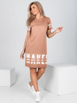 Туника женская длиной до колена, прямого силуэта, свободной формы. Рукав втачной, длиной до локтя.Спереди и на рукавах выполнен дизайнерский принт.