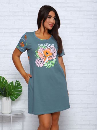 Туника: кулирка набивная и однотонная с коротким рукавом, с карманами и печать