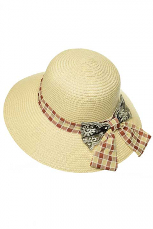 Шляпа с небольшими полями (шириной 8 см) выполнена из узкой бумажной тесьмы. По окружности шляпы пришита лента (шириной 2 см) для комфортной посадки на голову. Ленточки могут отличаться от представленных на фото.