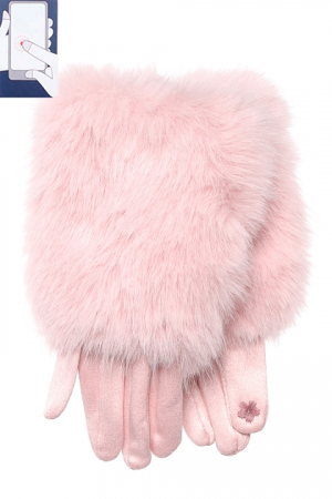 Перчатки из иск. замши на велюровой основе, сенсорные (нашивка на кончике указательного пальца). Украшены вставкой эко-мех.
