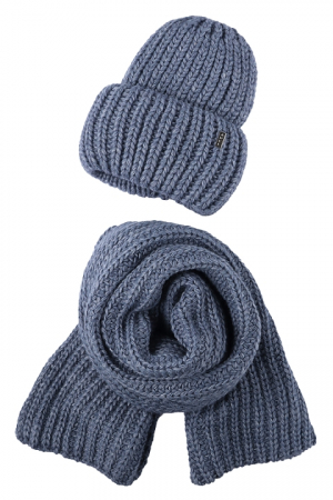 Комплект: шапка с объемным шарфом, вязка крупная и эластичная.