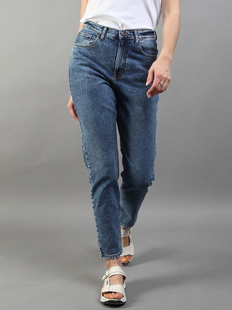 Женские классические ретро джинсы с пятью карманами с использованием лучших традиций 90-х. Посадка Mom fit, высокая талия спереди и сзади, свободные в бедре и зауженные к низу укороченной длины. Застежка на молнии. Выполнены из слабоэластичной ткани denim comfort stretch. Специальная средняя стирка "towel wash", мраморный эффект.