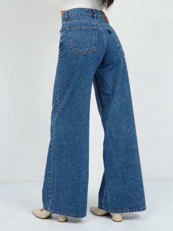 Самые модные и популярные сегодня женские джинсы ПАЛАЦЦО (PALAZZO) с очень широкими штанинами, клеш у которых начинается прямо от бедра. Эти 5-ти карманные джинсы с высокой посадкой и свободными штанинами, сильно расширяющимися к низу, позволяют получить утонченный силуэт и подчеркнуть особенности женской фигуры наилучшим образом. Застежка на молнии. Выполнены из традиционной хлопковой ткани denim. Классическая средняя стирка "stone wash".