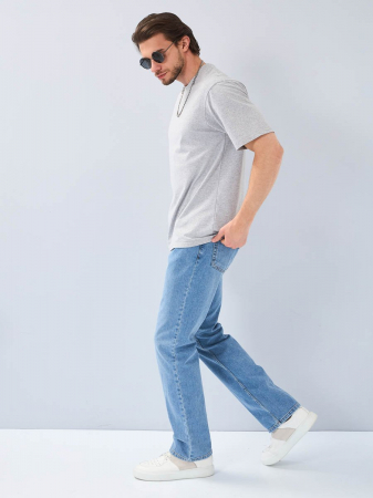 Мужские классические джинсы с пятью карманами. Посадка Regular fit (полуоблегающие по бедру), средняя высота талии. Застежка на молнии. Немного зауженные к низу. Выполнены из слабоэластичной ткани denim comfort stretch. Средняя стирка со слабовыраженными потёртостями спереди и сзади.