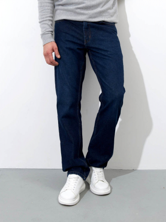 Мужские классические джинсы с пятью карманами. Эта модель выпускактся уже более 25-ти лет и все годы пользуется неизменной популярностью у наших покупателей. Посадка Regular fit (полуоблегающие по бедру), высокая талия, немного заужены к низу. Застежка на молнии. Выполнены из традиционной хлопковой ткани denim. Классическая темная стирка "stone wash".