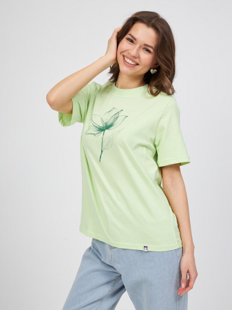 Женская футболка F5, Comfort fit (свободный силуэт), круглый вырез горловины, короткий рукав. Выполнена из классического трикотажного полотна.