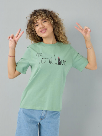 Женская футболка F5, Comfort fit (свободный силуэт), круглый вырез горловины, короткий рукав. Выполнена из классического трикотажного полотна.