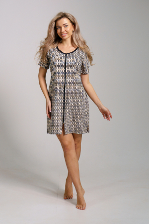 Женский халатик модной расцветки выполнен из 100% хлопчатобумажной ткани, что обеспечивает максимальный комфорт при ношении. Отличается мягкостью и приятной на ощупь текстурой. Материал прекрасно дышит. Носить такой халатик Вы сможете как летом, так и в любой другой сезон. Надёжный замок на молнии сохраняет свои свойства в течении всего времени использования. Женственный вырез и 2 боковых кармана добавляют образу шарм и делают изделие удобным и практичным. А изысканный поясок подчеркнёт вашу талию. Халатик средней длины подойдёт для любого типа фигуры. Отличная модель для дома, для роддома, после родов, для кухонных дел и хозяйственной уборки, для дачи. И конечно идеально после душа, сауны, бани и ванной. А так же будет замечательным подарком на любой праздник: 14 февраля, день рождения, 8 марта. Рекомендуется стирать в деликатном режиме 30 С. Это поможет избежать деформации и сохранить яркость цвета.