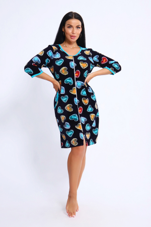 Женский укороченный халатик выполнен из качественного велюра и модного дизайна. Велюр практичен, прост в уходе и использовании. Обладает высокой устойчивостью к механическим повреждениям. Ему свойственны характеристики натуральных тканей, что делает его использование комфортным. Материал гигроскопичен, хорошо пропускает воздух и сохраняет тепло. Кроме этого он не меняет форму и не вызывает аллергических реакций. Отличается мягкостью и приятной на ощупь текстурой. Материал прекрасно дышит. Носить такой халатик Вы сможете в любое время года. Надёжный замок на молнии сохраняет свои свойства в течении всего времени использования. Женственный вырез и 2 боковых кармана добавляют образу шарм и делают изделие удобным и практичным. Изысканный, в меру длинный халат подойдёт для любого типа фигуры. А так же будет идеальным подарком на любой праздник: Новый год, день рождения, 8 марта, 14 февраля. Рекомендуется стирать в деликатном режиме 30 С. Это поможет сохранить качество изделия на долгое время.
