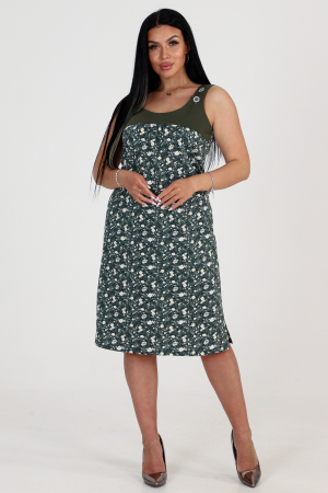 Сарафан женский из кулирки. Сарафан на кокетки из отделочной ткани. По боковым швам разрезы. С фигурными застежками на пуговицы.