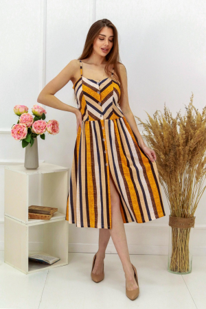 Женский сарафан с пуговицами на бретелях. Обязательный элемент летнего гардероба. Приталенный силуэт выгодно подчеркнет ваши формы, а вертикальная полоса визуально увеличит рост. Идеально подходит для прогулок, посещения различных мероприятий и пикников.