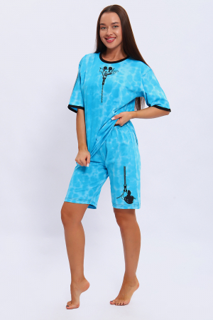 Пижама женская из кулирки варенка свободного кроя с цифровой печатью. Отделка на горловине и рукавах может отличаться быть черной и в цвет изделия.