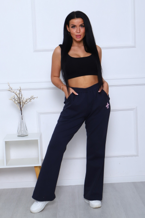 Брюки женские Клеш с карманами по бокам и небольшим принтом около левого кармана. Стильные и комфортные, материал достойно выглядит и хорошо держит форму.