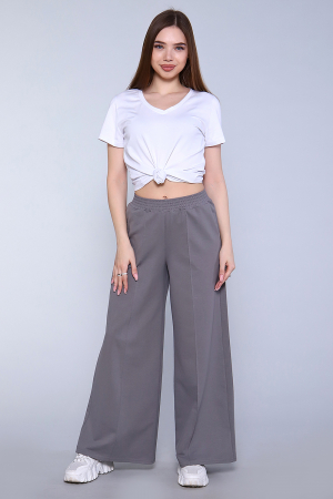 Широкие брюки женские палаццо со стрелками и с карманами. Пояс брюк обработан на поясной машине, что делает брюки практичными при носке резинка не скручивается. В модели палаццо клеш от бедра, это визуально вытягивает фигуру, делает стройнее и элегантнее. Брюки свободного кроя скрываю все недостатки фигуры. Отлично сочетаются с блузками, рубашками, футболками, пиджаками, свитерами и водолазками. Брюки палаццо отлично подойдут как на работу в офис, так и создадут праздничный вечерний образ.
