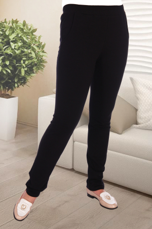Брюки женские, слегка зауженные к низу. Спереди удобные карманы, пояс прострочен на многоигольной поясной машине.
