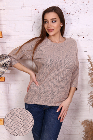 Джемпер из мягкого вязаного трикотажа, круглая горловина обработана обтачкой, спущенная пройма, рукав длиной 3/4. Спинка слегка удлинена и закруглена. Джемпер комфортный, универсальный, создаст неповторимый стиль для модницы любой фигуры.