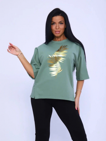Кофточка женская с боковыми рельефами, переходящими в разрезы шлицы. Незаменимая вещь в гардеробе каждой модницы. Рукав цельнокроеный, спущенный, летучая мышь, 3/4. На полочке кофты выполнена печать которая прекрасно дополняет образ, придавая изделию особый шик. Крой кофты летучая мышь из футера - отличное решение на каждый день! Свободный крой, широкая пройма рукава - модель отлично садится на любую фигуру. Кофта прекрасно сочетается с брюками, шортами, юбками, джинсами. Стильно, красиво и удобно!
