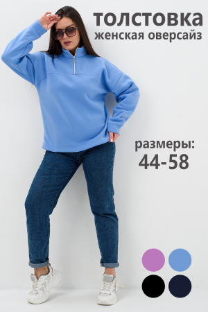 Женская толстовка из футера 2-х нитки. Длинный рукав на манжете обеспечивает тепло, прилегающий низ защищает от ветра. Особое внимание привлекает горло на молнии, которое не только добавляет функциональности, но и становится стильным акцентом в общем образе. Легко сочетается с различными элементами гардероба, создавая множество интересных образов. Толстовка - это практичный элемент вашего гардероба, который поможет вам чувствовать себя уверенно и комфортно в любое время года. (размер на модели 44-46)