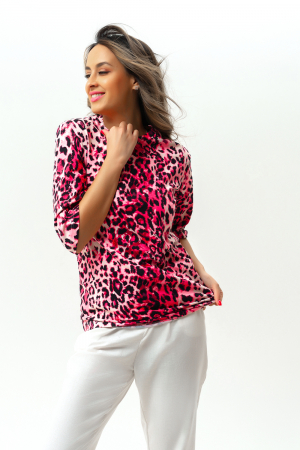 Леопардовая блузка подойдет как для создания нарядных образов, так и для повседневной носки. Эта летняя футболка станет отличным дополнением вашего гардероба и придаст вам неповторимый шарм и стиль.