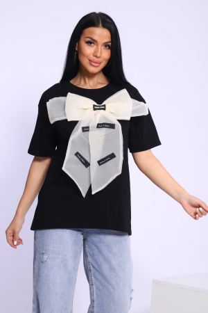 Модная и нарядная футболка с бантом - это стильный элемент вашего гардероба. Бант из тонкой ткани и хорошо держит форму. Футболка с бантом сделает образ изысканным и уникальным. Благодаря уникальному дизайну будет незаменимым элементом вашего гардероба. Подойдет на день рождение, для офиса, как вечерняя, праздничная и повседневная одежда. Рукав спущенный и не сковывает движения. Длина рукава указана от плечевого шва. Перед стиркой вывернуть наизнанку. Производство Китай.