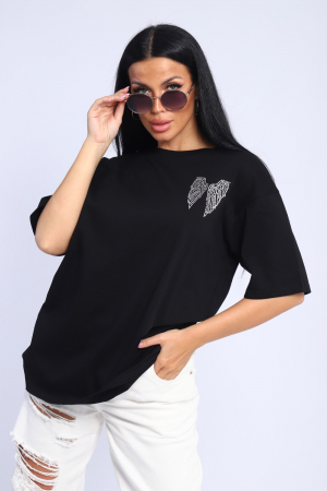 Модная и нарядная футболка со стразами в виде крыльев. Плотная и приятная ткань. Стразы расположены спереди и на спине. Очень красиво переливаются на солнце. Футболка сделает образ изысканным и уникальным. Благодаря уникальному дизайну будет незаменимым элементом вашего гардероба. Подойдет на день рождение, для офиса, как вечерняя, праздничная и повседневная одежда. Рукав спущенный и не сковывает движения. Длина рукава указана от плечевого шва. Перед стиркой вывернуть наизнанку. Производство Китай.