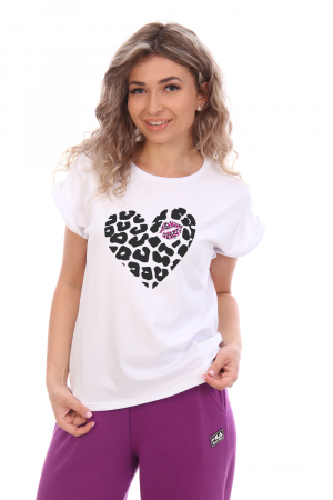 Футболка женская с оригинальным принтом, из хлопковой ткани с лайкрой. Ткань держит форму, не вытягивается, приятная на ощупь. Стильная футболка оригинального фасона. Посадка свободная.