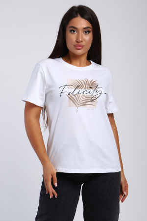 Футболка классического фасона сшита из ткани кулирка за счёт чего она мягкая, приятная к телу и на ощупь. Модель с округлым вырезом с усиление горловины. Станет прекрасным дополнением для вашего гардероба. Она отлично подойдет для любого образа. Большой выбор из ассортимента моделей с разными принтами футболок поможет вам выбрать любимую. Надев футболку с пиджаком, Вы создадите образ деловой и стильной девушки. А если Вы решите надеть ее с джинсами и кроссовками и отправиться на прогулку, то получится образ утончённый и романтический. Стильный принт дополнит Ваш образ. Мягкая хлопковая ткань приятная на ощупь и не нарушает воздухообмен, поэтому в ней тепло, когда на улице прохладно и комфортно в жарком помещении.