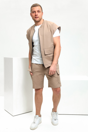 Мужской костюм в городском стиле из плотного мягкого материала. Комплект состоит из жилета оверсайз и свободных шорт. Костюм подойдет как подросткам так и взрослым, он достаточно широк и будет смотреться хорошо на всех, идеален как домашняя одежда, как одежда для прогулок на улице, для перелетов. Жилет универсален, можно сочетать с джинсами. Спортивные шорты можно носить с кофтами и худи. Комплект идеально сочетается с белой футболкой свободного силуэта оверсайз.