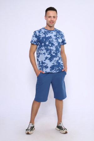 Мужской костюм изготовлен из качественного хлопка. Свободный прямой фасон подойдет как мужчинам, так и подросткам. Футболка с коротким рукавом, шорты с карманами длина до колена. На модели 50 размер.