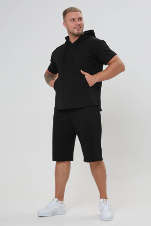 Мужской летний костюм, представляющий собой стильный комплект из кофты с капюшоном и шорт. Он создан для мужчин ценящих свободный стиль и комфорт в повседневной жизни. Кофта свободного кроя, с коротким рукавом и снизу один большой свободный карман, шорты длинной до колен, с двумя карманами, пояс на резинке со шнурком. Идеален для летних приключений, а также подойдет на теплую весна-осень. Это модная двойка прекрасно подходит не только для повседневной носки или работы, но и для занятий спортом, а также для активного отдыха, включая рыбалку, охоту. Качественная турецкая ткань.