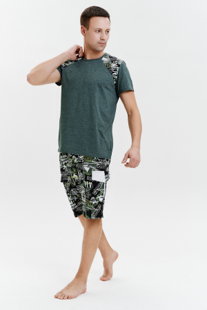 Мужской костюм. В комплекте футболка классического кроя с коротким рукавом. Яркие шорты с карманами, длина чуть ниже колена.