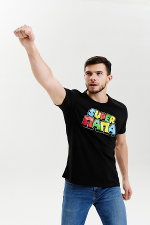 Мужская футболка с интересным принтом SUPER ПАПА выполнена из 100% натурального хлопка. Качественная, стильная, необычная футболка. Футболка прямого кроя с оптимальной плотностью на любой сезон. Хорошо сидит на фигуре, комбинируются с любой повседневной одеждой. Подходит для занятий спортом, для дома, а также как подарок на праздник, день рождения, юбилей, 23 февраля, новый год. Принт сохраняется после множества стирок, ткань приятна к телу.