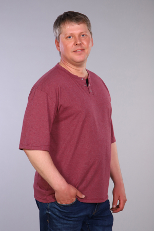 Мужская футболка из кулирки. Короткие рукава, прямой силуэт, горловина с треугольным вырезом, декорирована кнопками. Размеры от 54 до 62.