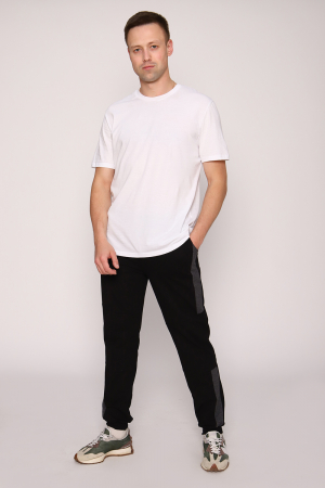 Мужские спортивные брюки выполнены из мягкого, эластичного материала, с применением декоративных вставок и отделочных строчек. Пояс выполнен на поясной машине, внизу манжет из эластичной рибаны. Модель невероятно комфортна в носке и подходит как для домашнего использования, так и для повседневной носки.