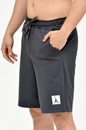 Шорты мужские средней длины с рисунком на штанине спереди. Отрезной пояс обработан на поясной машине, для регулировки имеется шнурок. По боковым швам расположены карманы. Данный трикотаж отлично держит форму, обеспечивая оптимальную посадку.