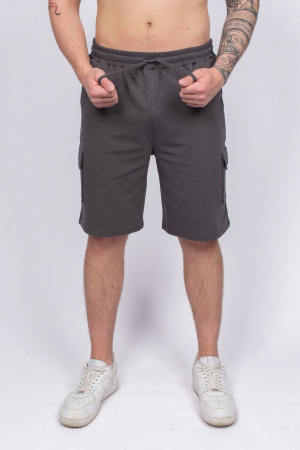 Шорты мужские, прямого силуэта с накладными карманами. Отрезной пояс, в цвет изделия, из кашкорсе с эластичной тесьмой внутри, закрепленной в шов. По поясу шорт вставлен плоский утягивающий шнурок. Длина шнурка = длина пояса + 45 см для возможности завязывания. На передней половинке шорт карманы с отрезным бочком. На боковом срезе шорт располагается накладной карман с клапаном из основного полотна. Карман располагается с 2-х сторон симметрично. Низ изделия обработан швом в подгибку. На левом кармане вшивной элемент, закрепленный отстрочкой. Модель рассчитана на рост 176-182см.