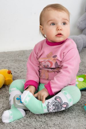 Милые колготки для самых маленьких. Нежные цвета - розовый и салатовый, спереди рисунок - симпатичный зайчик, сзади - сердечко