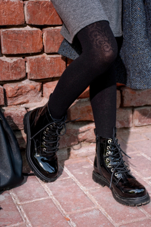 Стильные колготки для подростков. Однотонная гладкая поверхность, по верху кружевной узор - имитация чулка. Лаконичный, но в то же время оригинальный дизайн отлично подходит для школы.